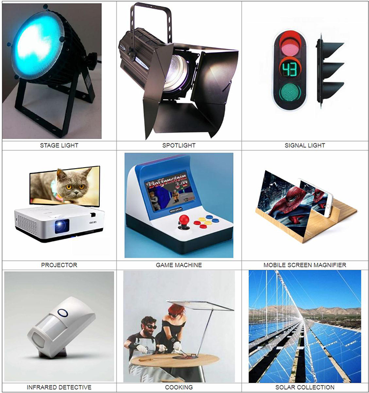 - Used as light distribution lenses to change light distribution, achieving diffusion, concentration, or uniform illumination.